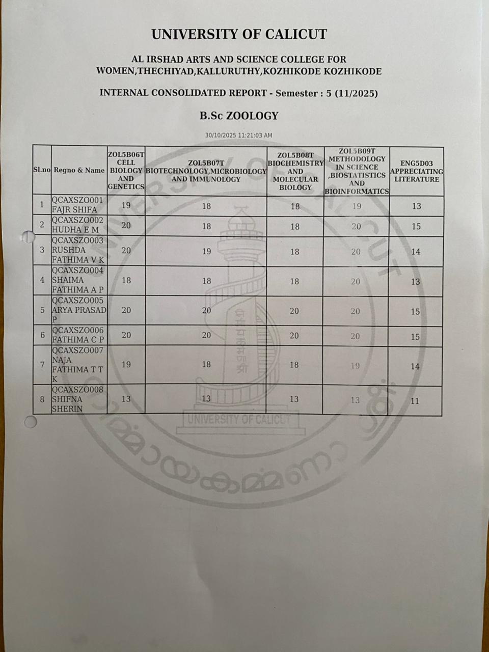 Fourth semester BSC Zoology internal examination (2021 admission)