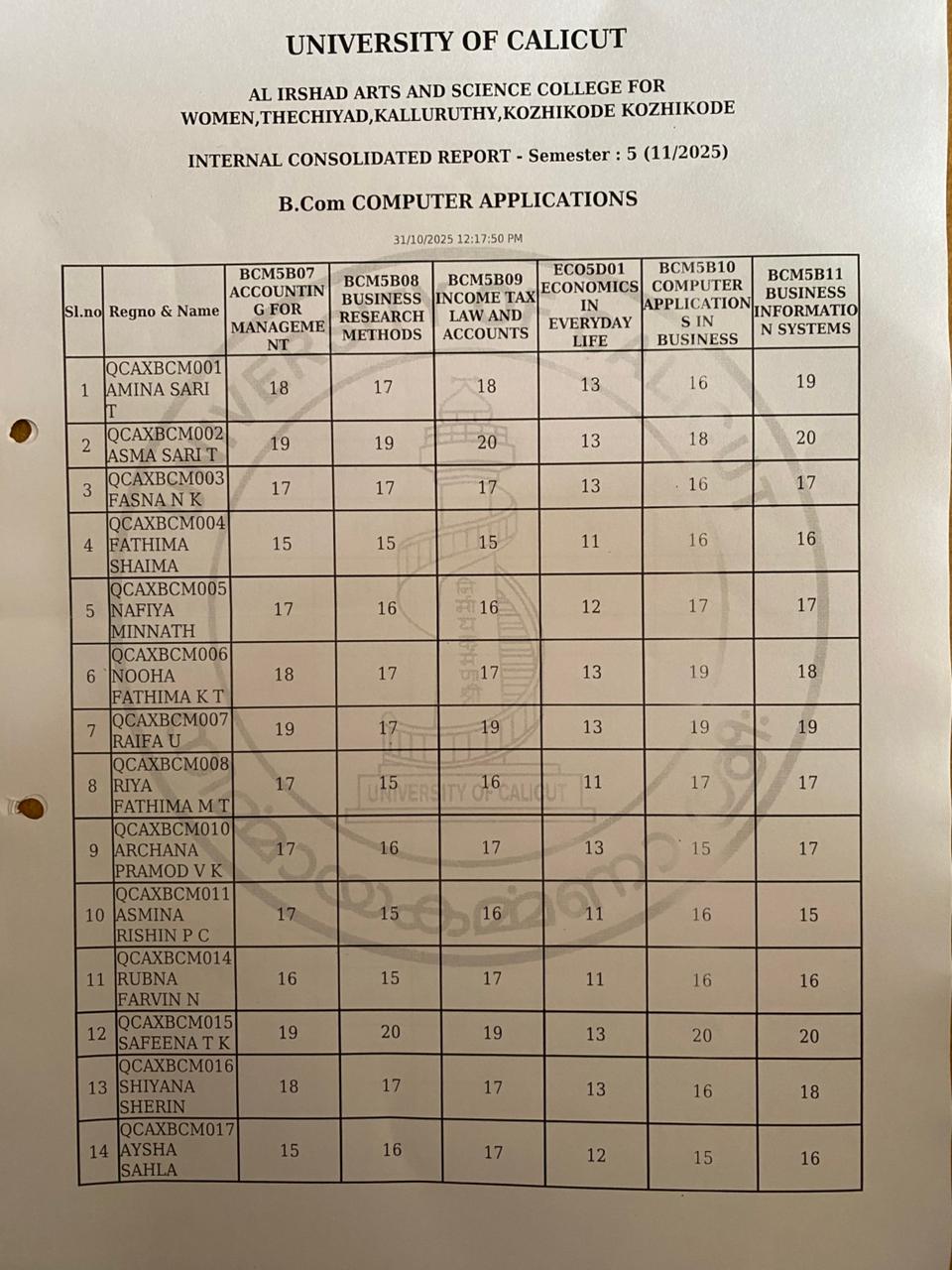 Fourth semester BSC Phychology internal examination (2021 admission)